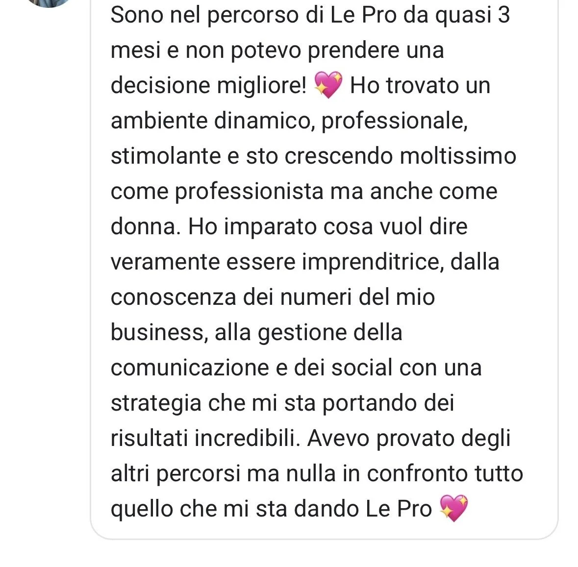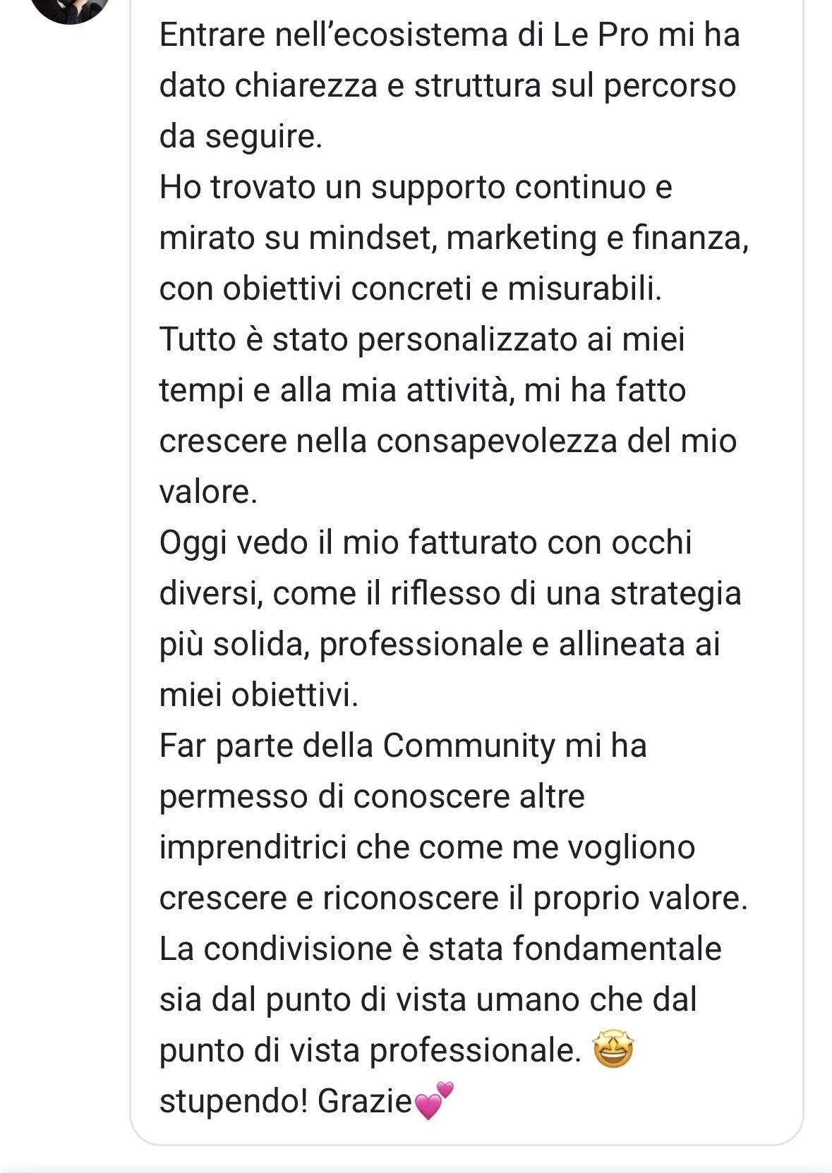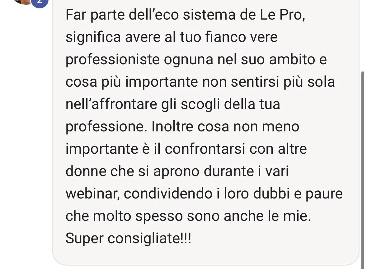 Una community in cui trovi altre professioniste che mirano a risultati concreti ed elevati come i tuoi.